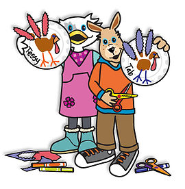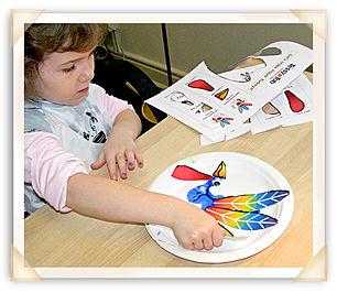 • our printable page of feathers, beaks, wattles and eyes to cut out and glue onto your handprint to complete a colorful paper turkey!